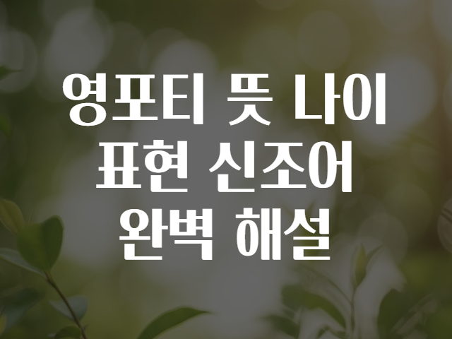 요즘 인터넷이나 SNS를 보면 ‘영포티’라는 단어가 자주 보이시죠?🤔 그런데 ‘영포티’가 도대체 뭐길래 이렇게 핫한 걸까요? 혹시 나이와 무슨 관련이 있을까 궁금하지 않으세요?👀 이번 글에서는 ‘영포티’의 뜻부터 나이 표현, 그리고 관련 신조어까지 덩달아 쉽게 풀어 드릴게요! 😄